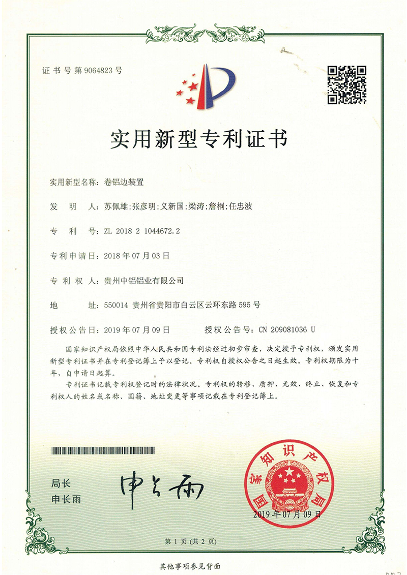 實(shí)用新型專利證書