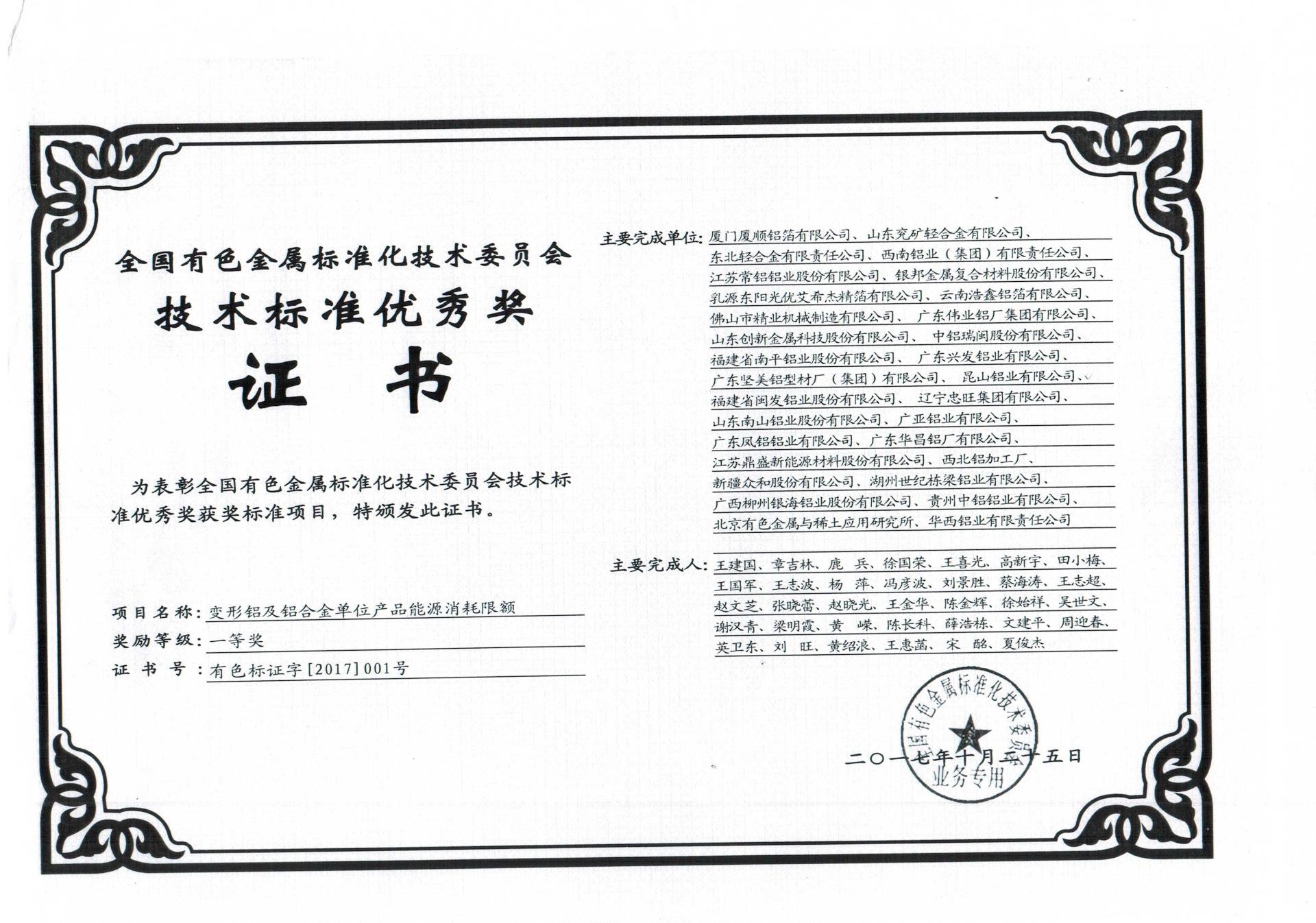 技術標準優(yōu)秀獎證書