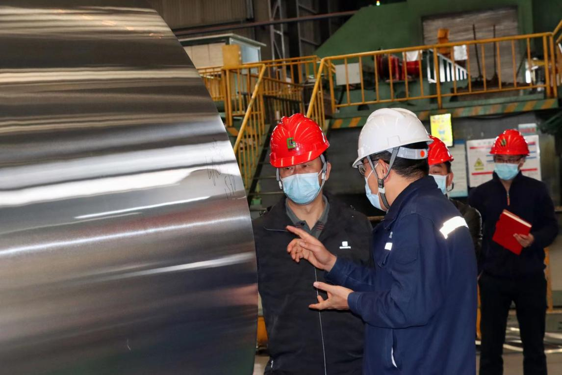 調(diào)研組一行深入貴州中鋁冷軋制造部的生產(chǎn)一線了解企業(yè)主要產(chǎn)品、技術工藝等情況。隨后,黃獻喜一行與貴州中鋁企業(yè)領導班子成員進行交談,聽取了貴州中鋁對生產(chǎn)經(jīng)營情況、外貿(mào)進出口情況、物流情況等相關匯報,調(diào)研組一行對貴州中鋁的生產(chǎn)經(jīng)營模式及取得的成績給予了肯定。同時對公司在經(jīng)營過程中存在的問題及困難有了初步了解。